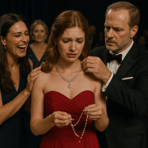 “They Laughed When Her Necklace Snapped and Scattered Across the Stage — Until the Billionaire in the Front Row Stood Up, Walked Toward Her, and Replaced It With a Family Heirloom Worth More Than the Entire Theatre. What He Said Next Silenced the Crowd and Turned the Night of Her Worst Humiliation Into the Beginning of a Story No One in That City Would Ever Forget”