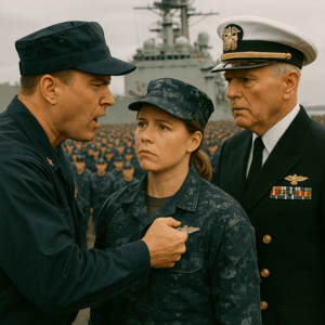 The sun glared over the parade deck of the naval base. Rows of sailors stood in perfect formation — over five thousand in total. Reporters filled the bleachers, cameras flashing as senior admirals prepared for a disciplinary hearing like none other.
