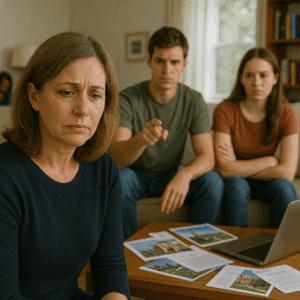 I was in the garage, digging through boxes for autumn decorations, when I heard voices spilling from Sophie’s room upstairs—sharp, panicked, tense.