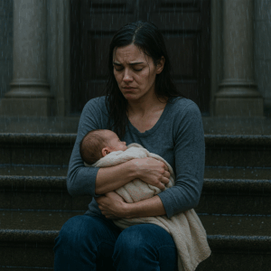 I staggered down the steps, rain soaking my hair, my clothes clinging to my skin. Lily whimpered against me, her tiny body fragile and trembling. I pressed her closer, desperate to shield her from the world that had just rejected us.