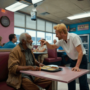 It didn’t take long. Two men at a nearby booth chuckled under their breath. “Another drifter,” one muttered, loud enough to carry. A woman whispered to her child, “Don’t stare.”