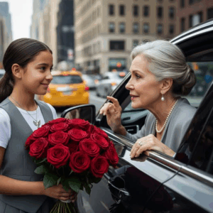 Vendors, drivers, and passersby watched as the wealthy woman trembled. The girl, startled, stepped back, clutching the roses to her chest. She didn’t understand why the stranger in pearls and silk stared at her as if she were a ghost.