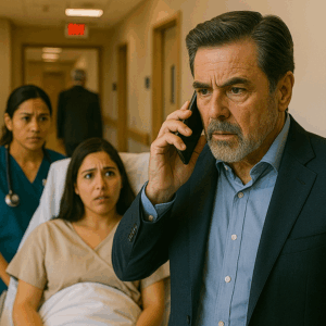 An hour later, Evan appeared at the hospital — eyes heavy, guilt flickering behind them.
