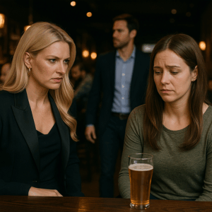The first time Emma Caldwell stepped into Rusty Harbor Bar, she didn’t expect trouble. She rarely expected anything dramatic from her quiet life in Ridgefield, a mid-Atlantic town where people still waved from their porches and grocery clerks asked about your kids. Emma had moved there three years earlier with her husband, Mark, after he retired from the Navy and took a job as a logistics coordinator for a local shipping company. Their life was simple, peaceful, and comfortably predictable.