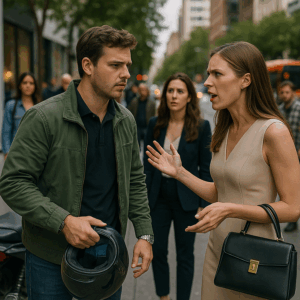 I looked at him properly then—faded blue jacket, slightly scuffed helmet, tan skin from riding in the sun. He didn’t look rich. He didn’t look important.