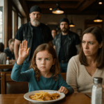 When a Little Girl Secretly Made a Rescue Signal at a Restaurant Table, Everyone Around Ignored It — Except a Group of Rough-Looking Bikers Who Saw Her Hand Tremble. They Followed the Family’s Car After They Left… What They Discovered Shocked the Entire Town.