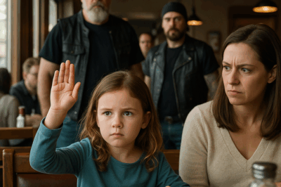 When a Little Girl Secretly Made a Rescue Signal at a Restaurant Table, Everyone Around Ignored It — Except a Group of Rough-Looking Bikers Who Saw Her Hand Tremble. They Followed the Family’s Car After They Left… What They Discovered Shocked the Entire Town.