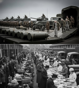 When the ship’s ramp dropped, the Germans stepped onto a broad concrete dock bustling with British soldiers, cranes, and trucks. Everything operated with quiet precision.