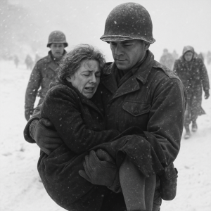 All around them, more soldiers were picking up the weakest women—lifting them bridal-style, carrying them piggyback, or supporting them under their arms. The transformation of the march was immediate. What had been a line of stumbling figures became a moving, living chain of cooperation in the middle of a blizzard.