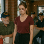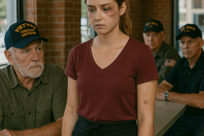 SS“A Group of Veterans Were Having Breakfast at a Small Diner When They Noticed the Waitress’s Bruised Arms and Trembling Hands. They Quietly Watched, Realizing Something Was Very Wrong — So They Left Her a Mysterious Note and a Plan That Would Soon Expose a Terrible Secret and Save Her Life.”
