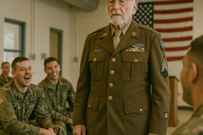 “They Laughed at the Quiet Old Veteran Who Showed Up to the Military Base in a Worn Uniform and Scuffed Boots. The Young Recruits Whispered That He Was Just a Nobody—Until He Stood Up During the Ceremony, Saluted the Flag, and Revealed Who He Really Was. The Whole Base Went Silent.”