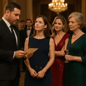 Elena did not flinch. Her heels clicked steadily against the marble as she approached the registration table. She set down her small clutch, opened it calmly, and withdrew a cream-colored card embossed with golden letters.