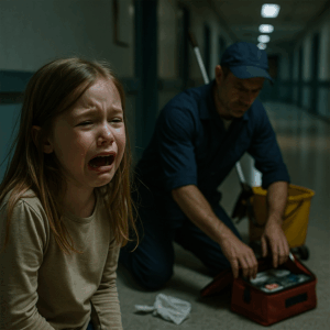 When the CEO’s Little Daughter Ran into the Lobby Crying, “They Hurt My Mom!”, Everyone Froze — But No One Expected the Quiet Janitor, the Man Everyone Ignored, to Reveal a Secret Skill That Would Change Their Lives Forever