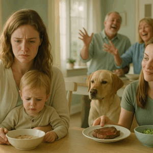 “The Dog Ate Better Than My Son! Sister’s Diamond Apron Sparkled as She Hand-Fed Her Great Dane Steak, While My Boy Sat With Expired Food — Parents Mocked, Saying ‘It’s Just Expired,’ But My Furious Reply Left the Entire Family Staring in Stunned Silence!”