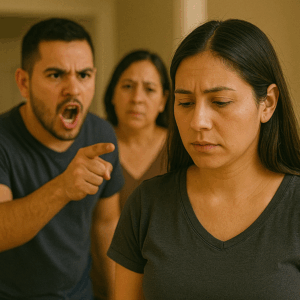 I looked at Mom — sitting quietly on the couch, eyes down, saying nothing.