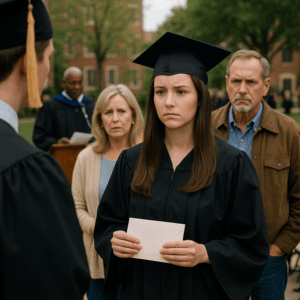 I slipped the envelope into my gown pocket and walked to my assigned row, sitting among hundreds of students wearing the same blue robes, the same caps, the same nervous smiles.