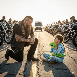The memorial ride became more than remembrance. It became a rescue, a reminder that even in a world of chaos and noise, humanity can still stop traffic, drop everything, and kneel in the road for a child in need.