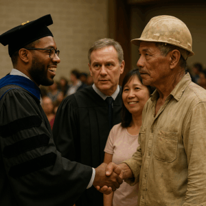 The professor sighed. “Your father—your stepfather—was the best student I ever had. Smarter than many of my colleagues today. He could have changed the country’s infrastructure, maybe even the world. And then… he disappeared. No one knew why. To see him again here, at his son’s PhD defense—it’s like fate reminding me of what was lost.”