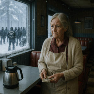 “On the brink of losing her diner, a kind woman opened her doors during a blizzard to 15 Hells Angels. She gave them her last food, expecting nothing. But by morning, the thunder of 100 motorcycles outside revealed a shocking twist that would change her life forever.”