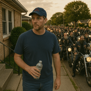 One act of kindness—sharing a bottle of water with an injured stranger—got single dad Adam Rivers fired from his warehouse job. But days later, his quiet street thundered with 40 Hells Angels arriving at his doorstep. The reason they came, and what they did next, silenced every critic.