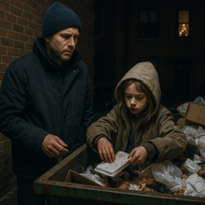 A lonely father headed to work on Christmas Eve froze when he saw a 7-year-old girl digging through garbage in the freezing dark. Her trembling hands told one story. Her eyes told another. What Nathan Hayes discovered about her shattered him—and changed both of their lives forever.