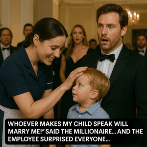 “The Millionaire’s Challenge Seemed Impossible: His Child Hadn’t Spoken A Word In Two Years. ‘Whoever Makes Him Speak Will Marry Me,’ He Announced. Laughter Echoed Across The Ballroom — Until A Poor Employee Approached The Boy, Whispered Softly, And The First Word Out Of His Mouth Changed Everything.”