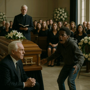 “A billionaire sat stone-faced at his only daughter’s funeral after a tragic accident. Suddenly, a homeless boy stormed the chapel, racing to the coffin and crying out: ‘Your daughter is still alive!’ The shocking secret he revealed left the powerful tycoon and every mourner in stunned disbelief.”