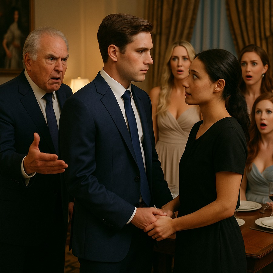 The maid dropped the tray in shock, glasses shattering across the marble floor. Her face turned crimson as the entire room’s attention fell on her. She tried to retreat, but the heir stepped forward and took her hand before anyone could stop him.