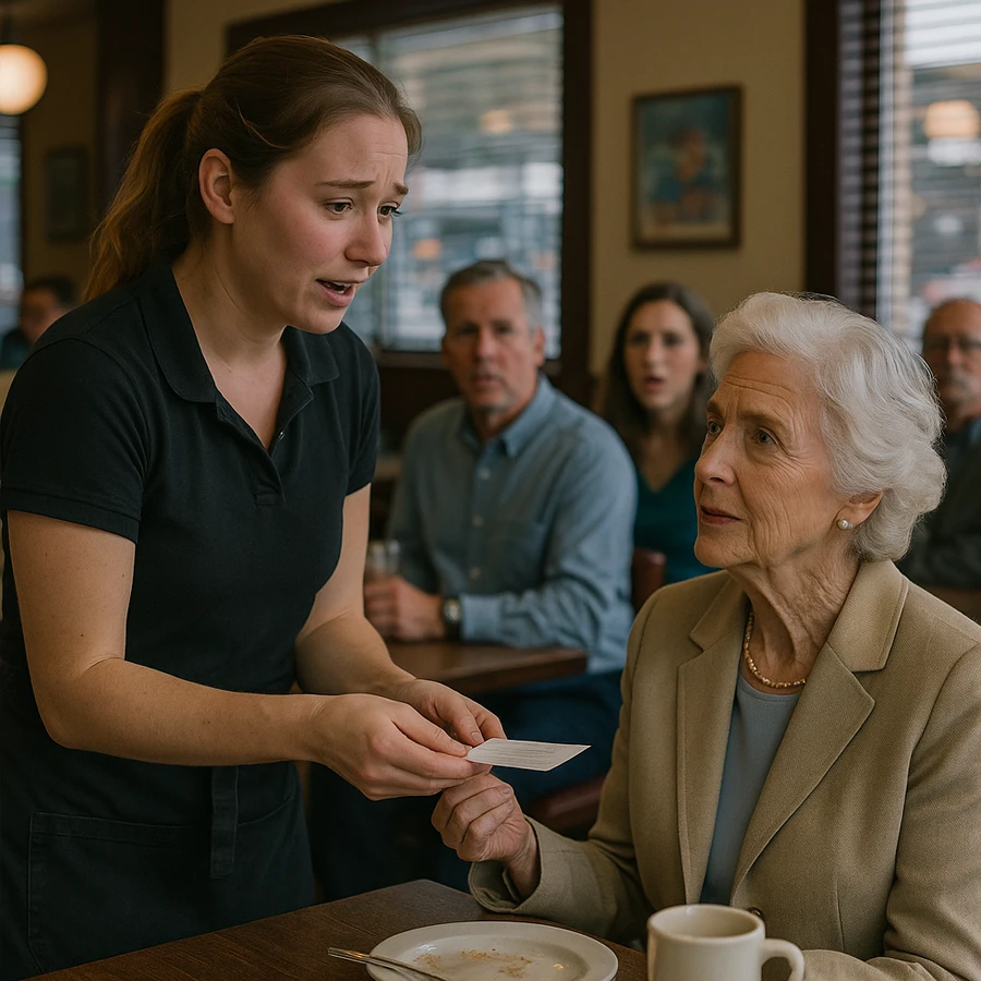 A Struggling Waitress Paid for an Elderly Woman’s Meal Out of Pure Kindness—But What She Didn’t Know Was That the Woman She Helped Was a Secret Billionaire Who Would Later Return With a Shocking Revelation That Left the Entire Restaurant Stunned, High Society Talking, and the Waitress’s Life Changed Forever in One of the Most Unbelievable Twists of Fate Ever Witnessed