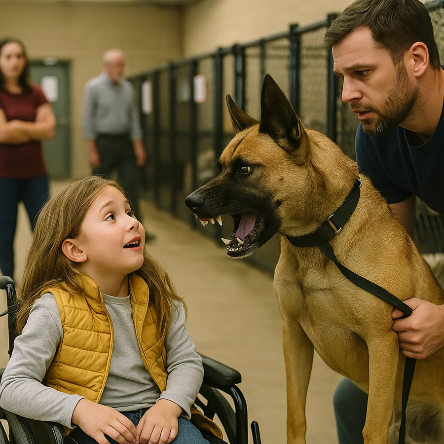 Animal shelters are often filled with stories of broken trust and second chances. Dogs abandoned, mistreated, or labeled as “dangerous” wait behind cold steel bars for someone brave enough to give them another shot. But one encounter at a shelter in the United States stunned everyone present: a little girl in a wheelchair reached out to the most aggressive dog in the facility — and the unexpected bond that followed left the entire staff speechless.