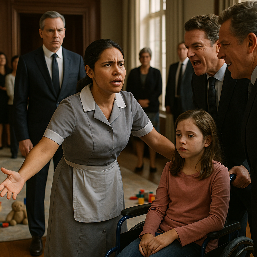 According to witnesses, Pierce returned unexpectedly from a business trip. He stormed into the mansion’s east wing after hearing unusual noise. To his astonishment, he found Rosa in the playroom, standing protectively in front of Emily. The girl was trembling, her wheelchair slightly tilted, as two visiting relatives—distant cousins with reputations for cruelty—mocked her condition.