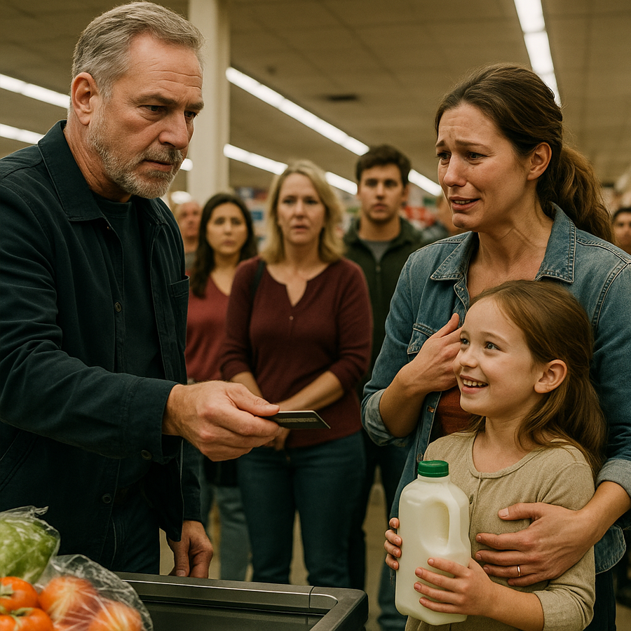 The cashier processed the payment. The mother stood frozen, clutching her daughter, tears streaming down her face. The little girl, unaware of the man’s wealth, simply smiled and whispered, “Thank you.”