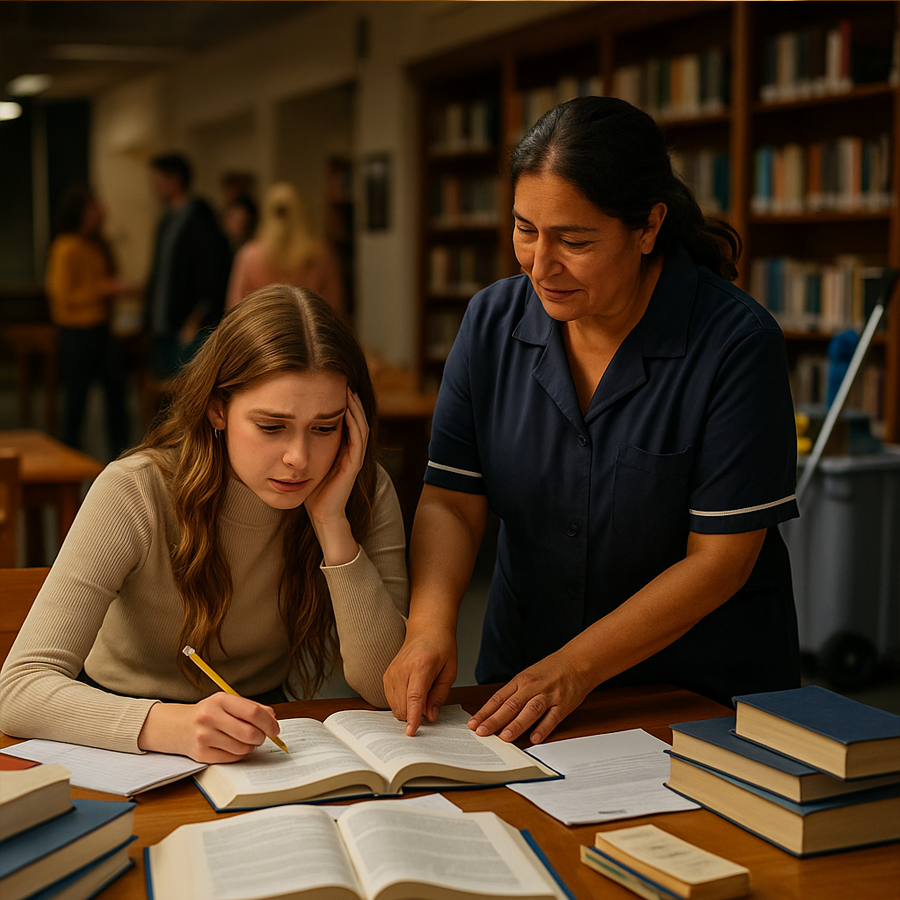 For weeks, Sophia secretly met Rosa after hours in the library. While other students dismissed her as partying or shopping, she sat under fluorescent lights, absorbing lessons from the woman who scrubbed their floors. Rosa didn’t just teach formulas—she taught resilience, discipline, and the art of breaking down problems into pieces.
