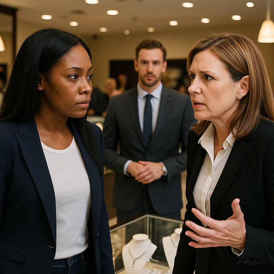 As Monica entered the sparkling showroom, glass cases glittering with diamonds, she approached the counter where two sales associates stood. Instead of greeting her warmly, they exchanged glances. Moments later, the store manager appeared.