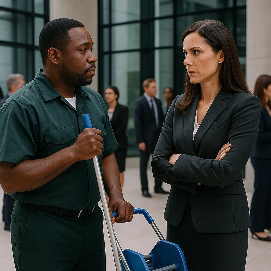 At the bottom of the corporate hierarchy was Marcus Johnson, a janitor who had worked at Sterling Dynamics for over a decade. Always punctual, always polite, he moved quietly through the endless marble hallways, mopping floors and emptying bins while executives in tailored suits brushed past without a glance.