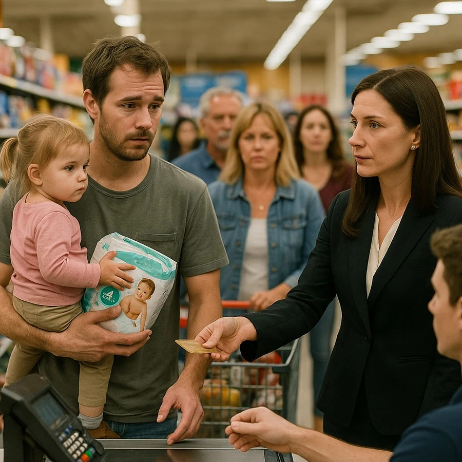 The man, whose name has not been publicly disclosed, had lost his job only weeks before. His savings were gone, bills had piled up, and his bank account was empty. He confessed later that he had skipped meals just so his baby would have enough formula. That day, his last dollar was spent on the most essential item—diapers.