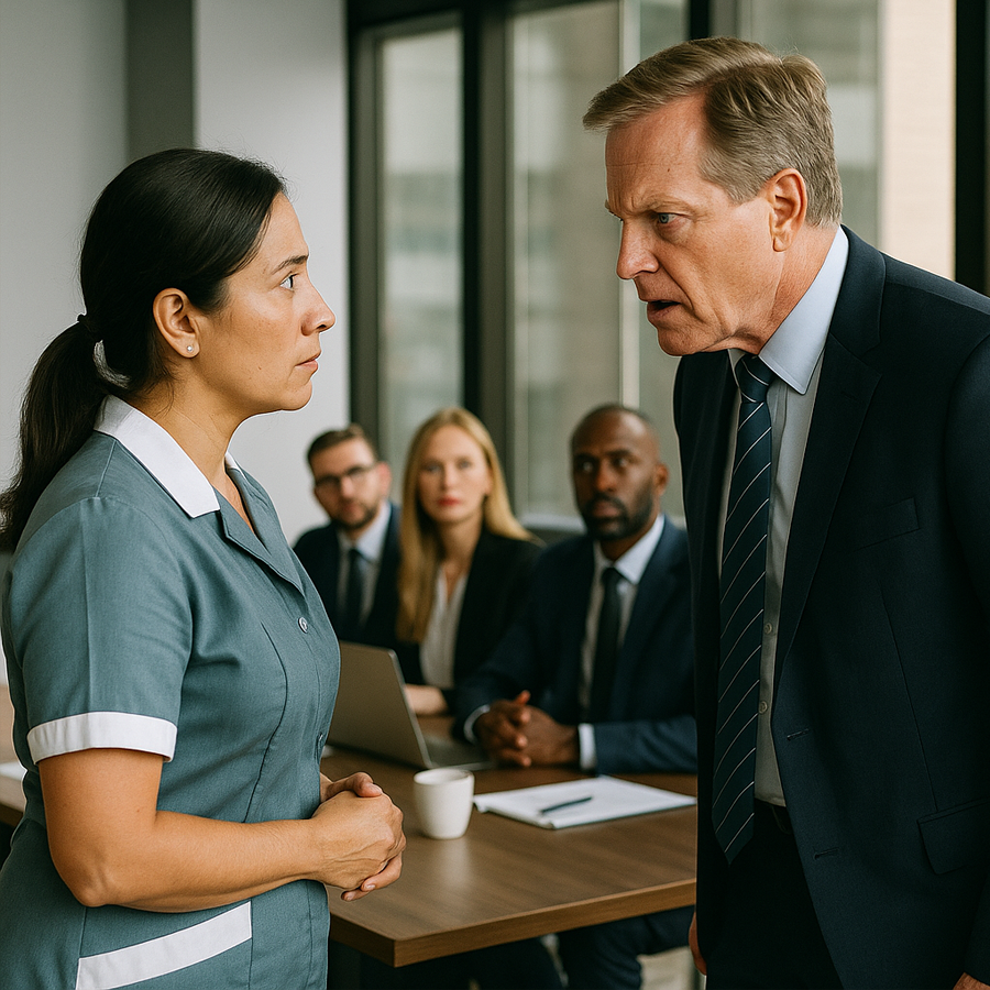 The millionaire thought money made him the smartest man in the room. But when the moment of crisis came, it was Maria, the cleaning lady, who carried the weight of millions with her voice.