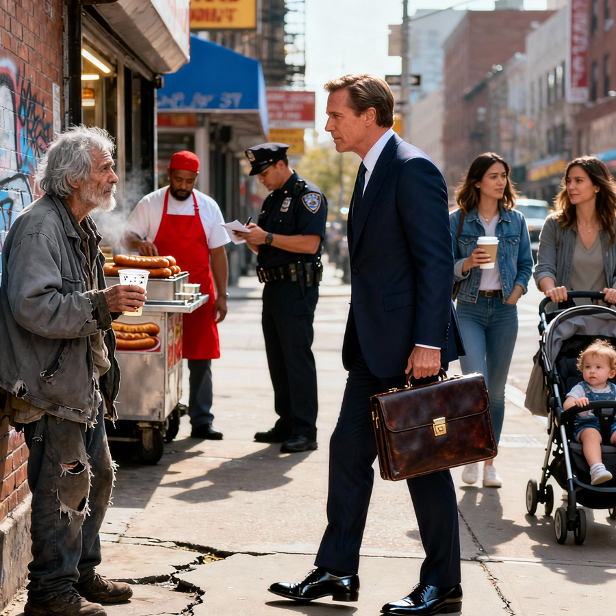 His coat was thin and clearly worn from years of use. His shoes were carefully tied, though the soles had long since lost their grip. His beard was gray, neatly trimmed, and his eyes carried a gentleness that contrasted sharply with the assumptions people made the moment they saw him.