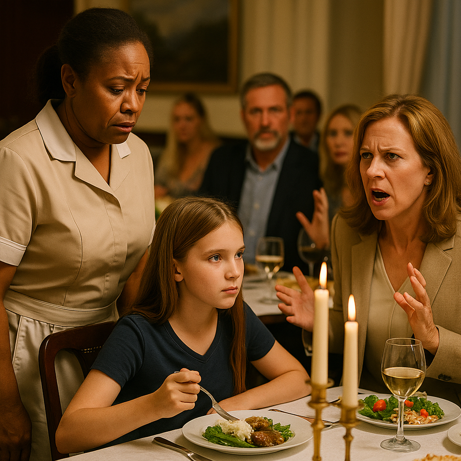 The family’s maid, a Black woman in her forties, had worked for them for years. She was quiet, diligent, and skilled in the kitchen. That night, she had prepared a special dinner—a recipe passed down through her family for generations. She presented it with care, placing steaming dishes on the table, hoping to share not just food, but a piece of her heritage.