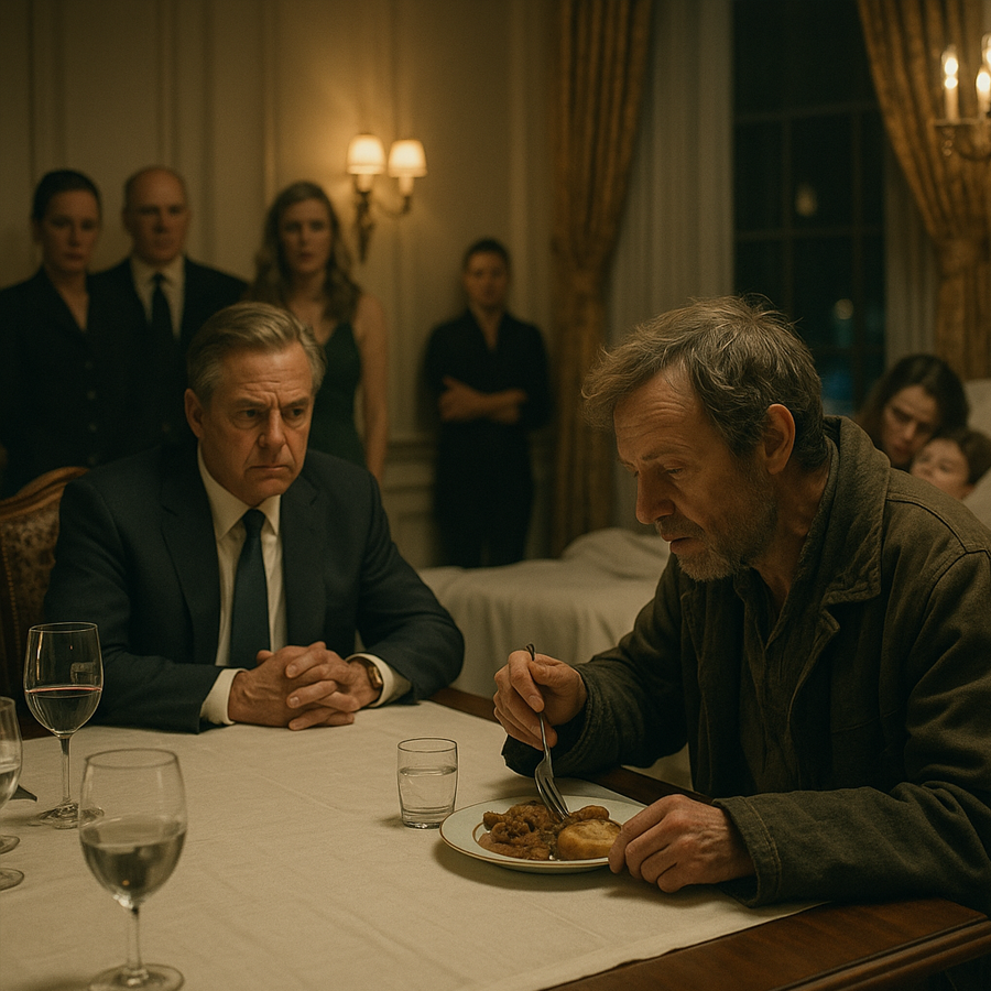At first, Charles refused. Staff whispered that the man was a con artist, a lunatic looking to exploit the family’s grief. Yet Daniel’s mother, Eleanor, wept quietly at the table, her maternal instinct stronger than her husband’s pride. Against Charles’s protests, she ordered the cooks to prepare a simple plate of food.
