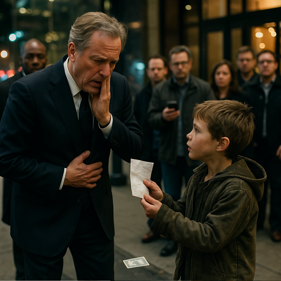 The boy could not have been older than nine. His shoes were torn, his jacket far too thin for the biting autumn wind. He stood on the corner clutching a crumpled piece of paper, his small hands trembling. Most pedestrians glanced once and walked on, dismissing him as another lost child among the faceless poor. But he was waiting for someone to stop.