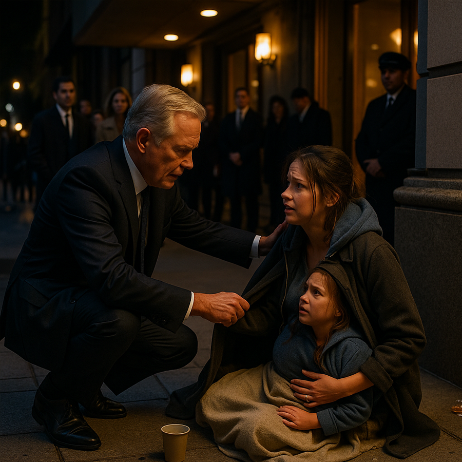 On that bitter night, she sat near the entrance of a luxury hotel, clutching a worn blanket around her shoulders. Her lips trembled as she whispered to passersby, “Anything… please.” Most looked away. Some tossed coins. A few muttered insults.