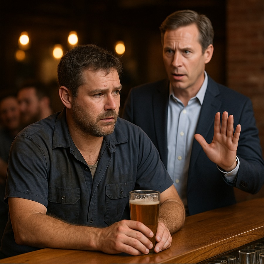 The bar fell quiet for a heartbeat before the group burst into louder laughter. “How noble!” one jeered, clapping mockingly.