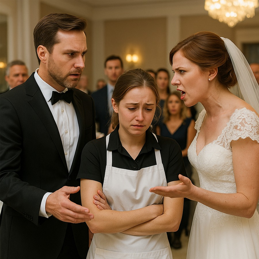 Near the back of the hall, one of the catering staff—a young maid named Clara—accidentally spilled a glass of wine. The liquid splashed across Vanessa’s designer gown. Gasps erupted. Clara immediately bent down, apologizing profusely, her hands trembling as she tried to clean the mess.