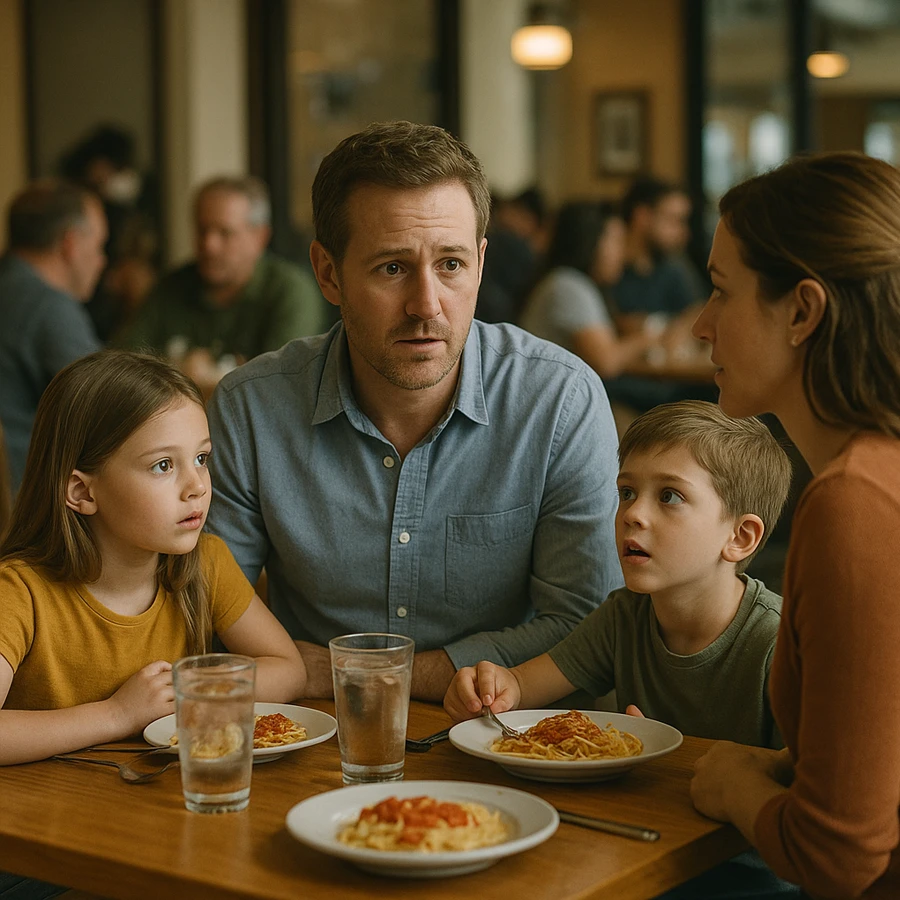 The entire restaurant turned to look. Conversations hushed. Adrian, the man who could silence boardrooms with a glance, sat powerless under the innocent scrutiny of his children.