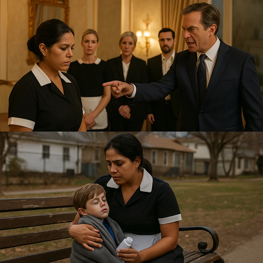 It was there that James saw something that froze his heart: Ana, the maid he had fired that very morning, sitting on a park bench with a small boy in her lap. The child coughed heavily, his tiny body wrapped in a worn blanket.