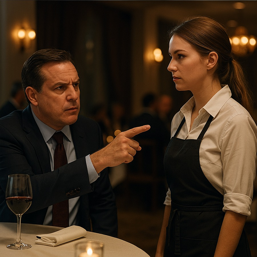 The waitress, without raising her voice further, bowed her head slightly and walked away, leaving behind a silence heavier than any insult.