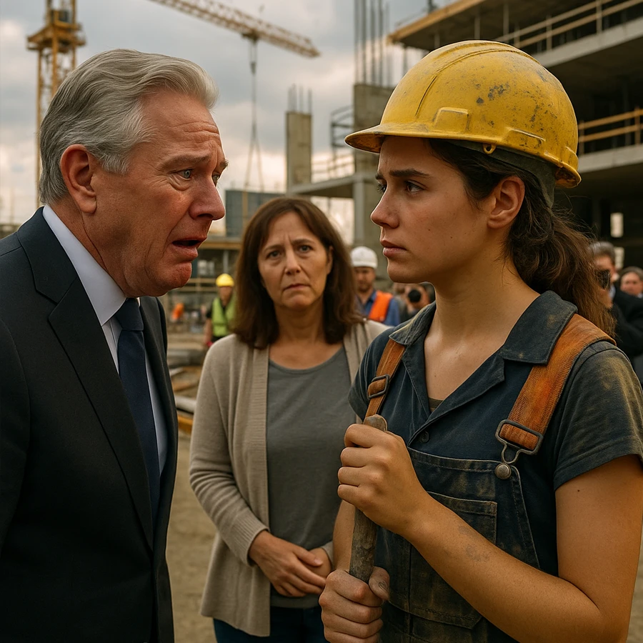 By evening, the story had leaked. Reporters swarmed the site, cameras flashing as they demanded answers. “Is the construction worker really your daughter?” “What does this mean for your empire, Mr. Hamilton?”