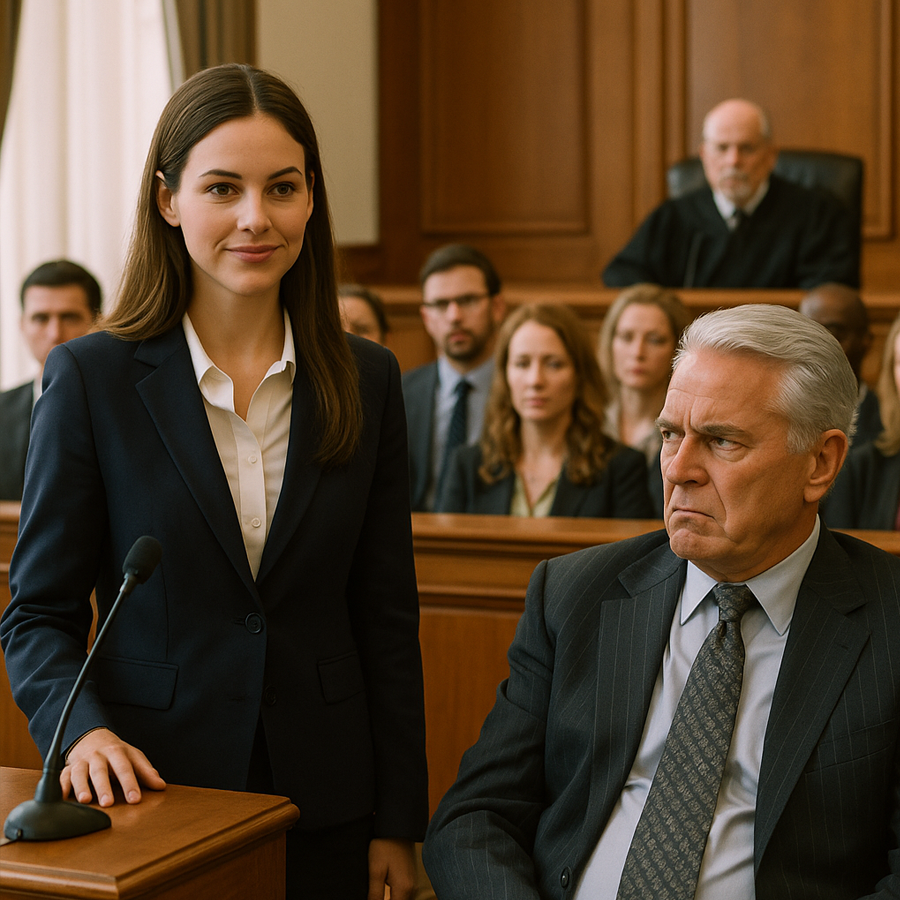 Across from him sat a young lawyer, elegant in a modest navy suit, with an expression of calm determination. She was new to the courtroom, or so it seemed, and many assumed she lacked the experience to go against someone like Blake.