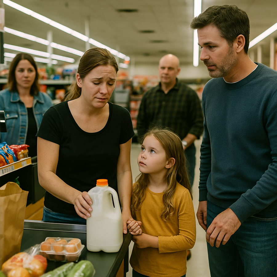 The cashier sighed impatiently and set the gallon aside. Behind her, customers shuffled uncomfortably, avoiding her eyes. Sophie’s face fell, her lip trembling.